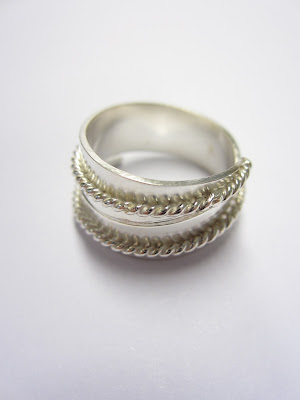 Idag har jag gjort den här enkla silverringen, bottenplattan som är själva ringen är faktiskt en restbit från "Diadíma" ringen. Jag hade inga idéer om vad jag skulle göra, jag stod vid min plats och plockade med mina silverbitar när min lärare gav mig i uppgift att göra en ring av den här silverbiten med filigran. (Filigran är tvinnad tråd, vi håller som sagt på med olika tekniker just nu). Så det var en riktigt rolig uppgift! Ringen tog inte många timmar att göra men den är ganska fin ändå.